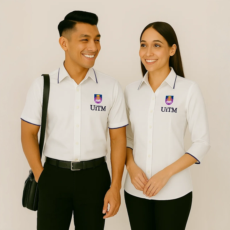 Professional corporate shirts tailored for UiTM staff and students. Designed with crisp, wrinkle-resistant fabric and contemporary fit, ideal for internships, career events, and business-ready campus presence