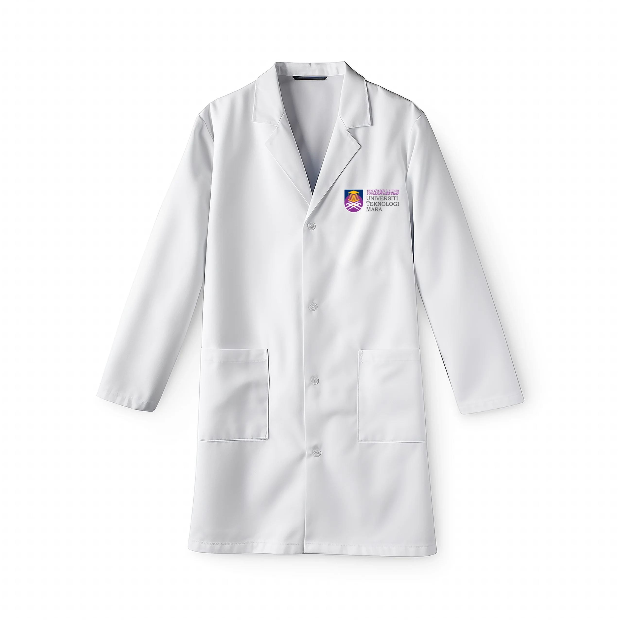 Essential lab coats for UiTM science and medical students, providing safety and professionalism. Made from quality protective fabric with proper coverage for laboratory work and clinical practice.